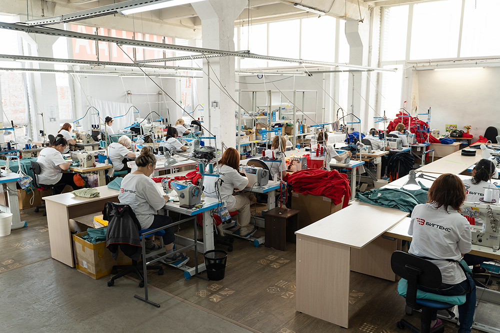 Современное производство с технологичными швейными цехами.