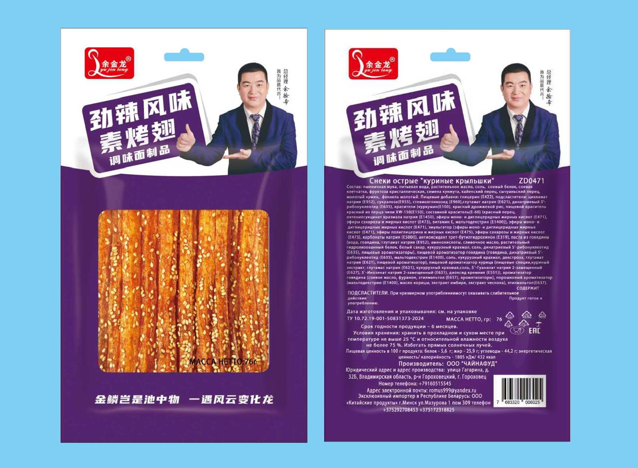 Производитель ООО «Чайна Фуд», производителя Китайский снеков на территории России. Большой набор снеков из соевого мяса, откройте для себя неповторимый мир кулинарии с нашими острыми снеками. Этот продукт подарит вам яркое погружение в многогранность вкуса и аромата Восточной кухни, понравится как искушённым гурманам, так и тем, кто любит экспериментировать с новыми ощущениями! Высоко маржинальный и эксклюзивный продукт, позволит Вам легко завоевать рынок сбыта и увеличит вашу прибыль в несколько раз.