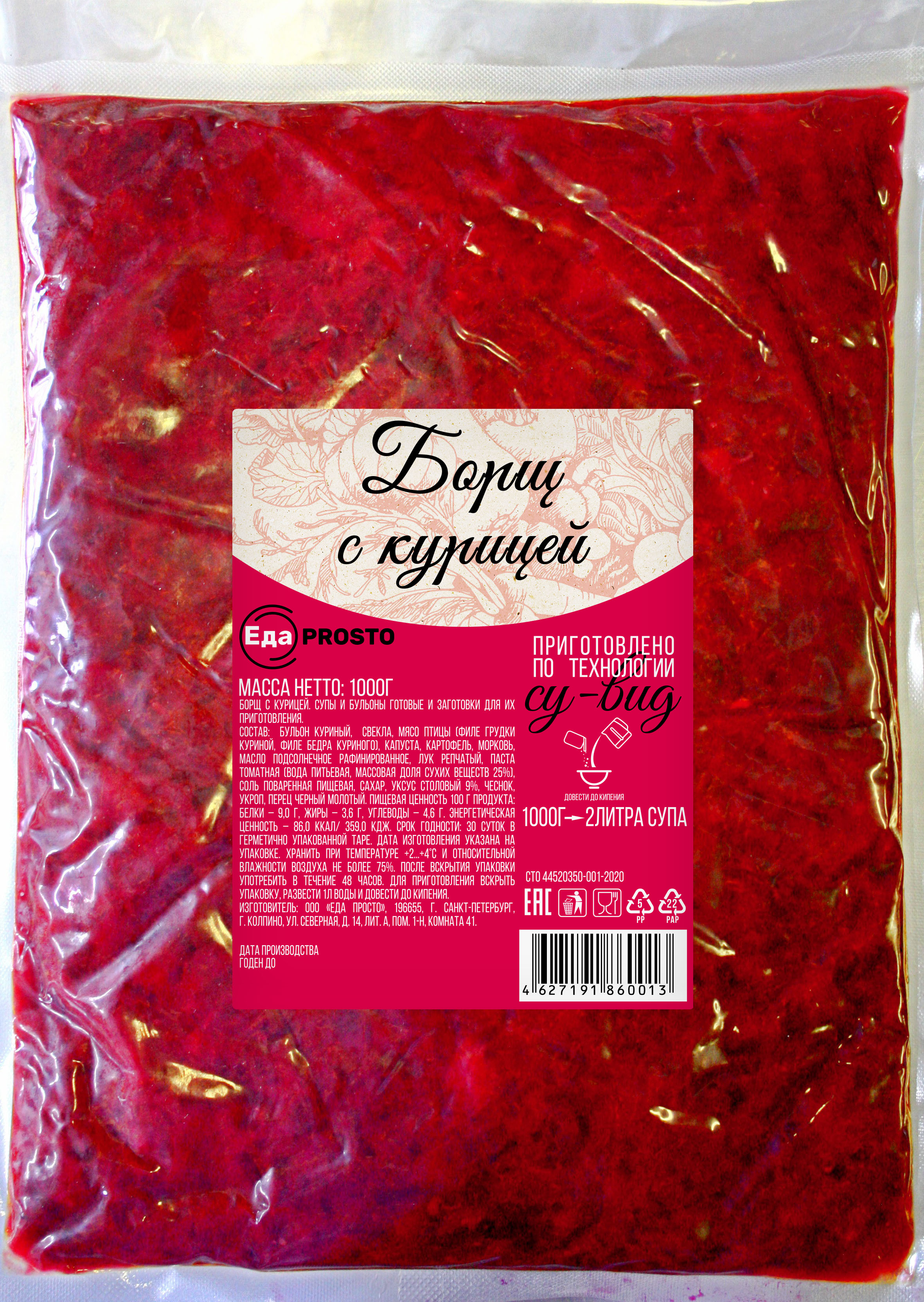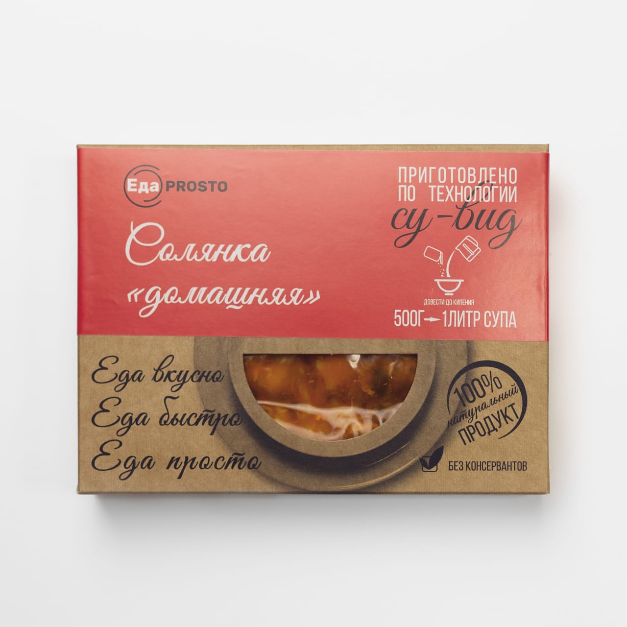 Компания «Еда просто» специализируется на производстве готовых блюд и полуфабрикатов, приготовленных с использованием технологии «Су-Вид». Данная технология (в переводе с французского «под вакуумом») позволяет максимально сохранить все вкусовые, питательные и полезные свойства продукта, благодаря особому температурному режиму тепловой обработки без доступа кислорода и внешней агрессивной среды. Клеточные мембраны продуктов и все полезные вещества сохраняются, мясо и овощи получаются мягкими и нежными, при этом сохраняя текстуру исходных продуктов.