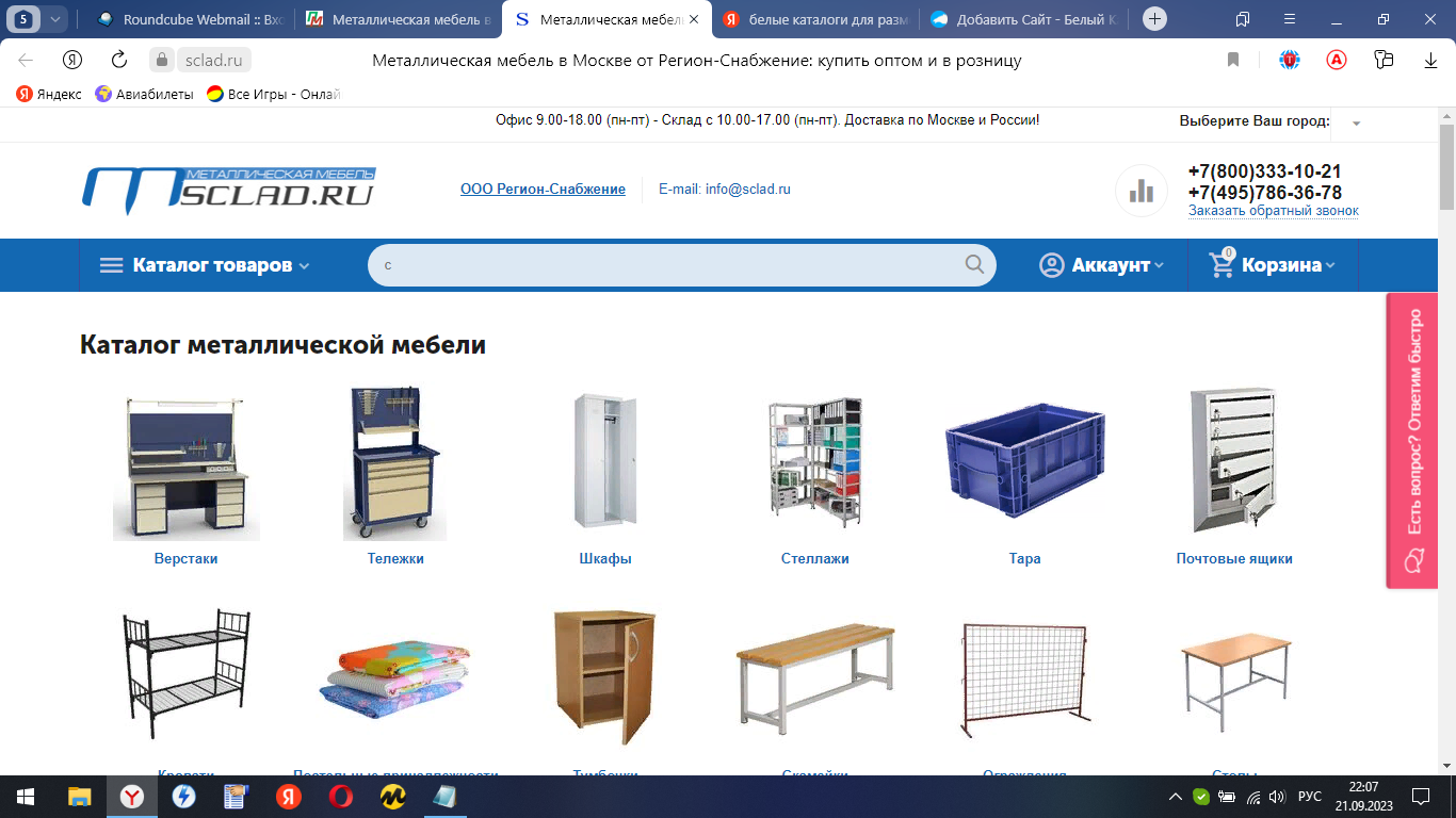 На нашем сайте представлен широкий выбор верстаков, шкафов, тележек из прокатного листового металла высочайшего класса износа. На многие предприятия поставлены наши изделия из листового металла такие как шкафы, верстаки, стеллажи, тележки и другая продукция представленная на нашем сайте Склад.ру. У нас вы можете купить несколько десятков разновидностей готовых изделий из листового металла и металлического профиля. А также мы реализуем медицинскую мебель такую как кровати, столы, банкетки, шкафчики, лари. У нас много сопутствующих товаров к производимой нами продукции. Это бытовая климатическая техника.