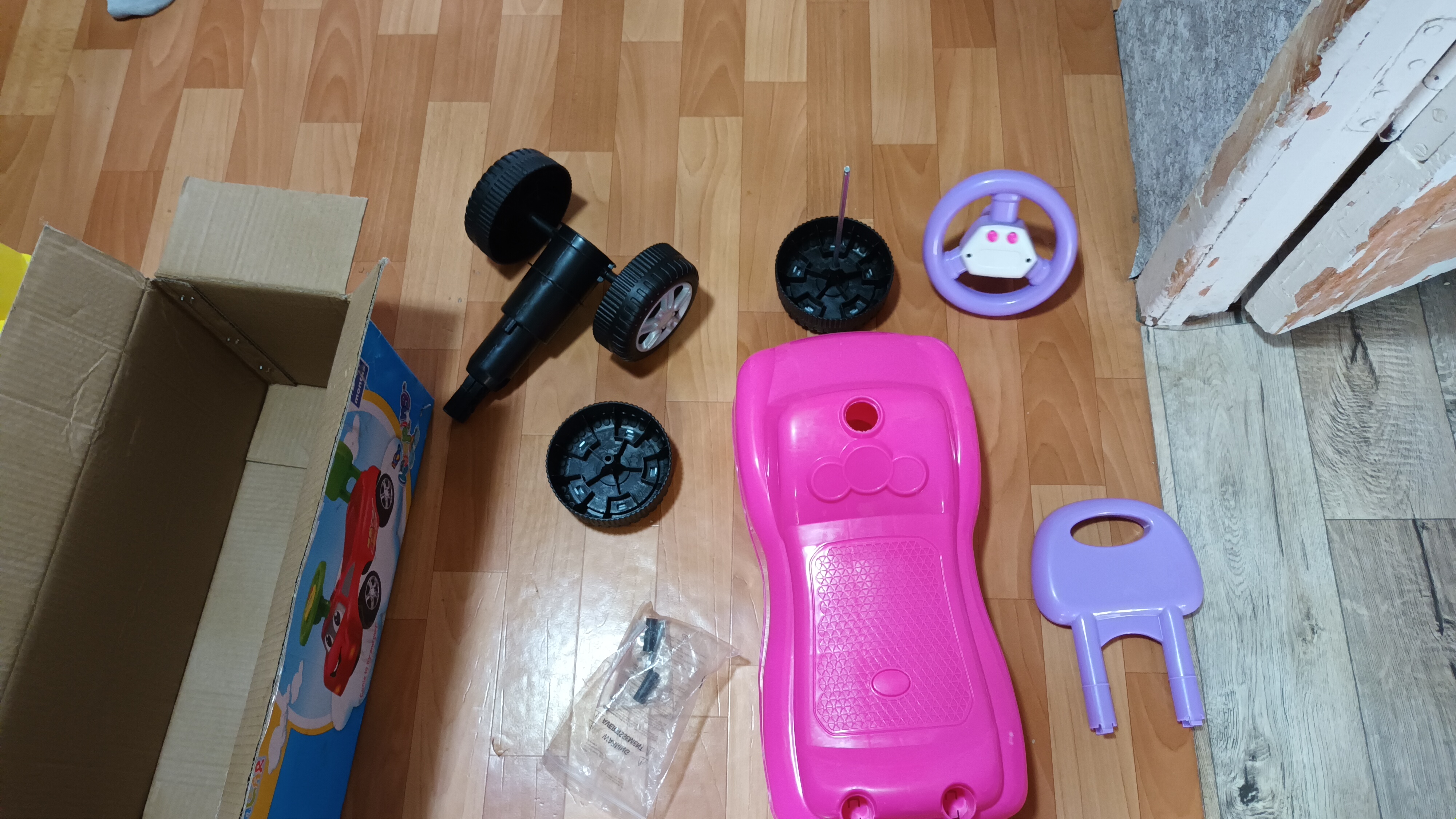Пришла машинка без задней оси, куда вставлять колеса? Увидели когда распечатали дома!!!! Брали в подарок,ребёнок плачет. Спасибо большое!!!!верните деньги или высылайте недостающие элементы!
