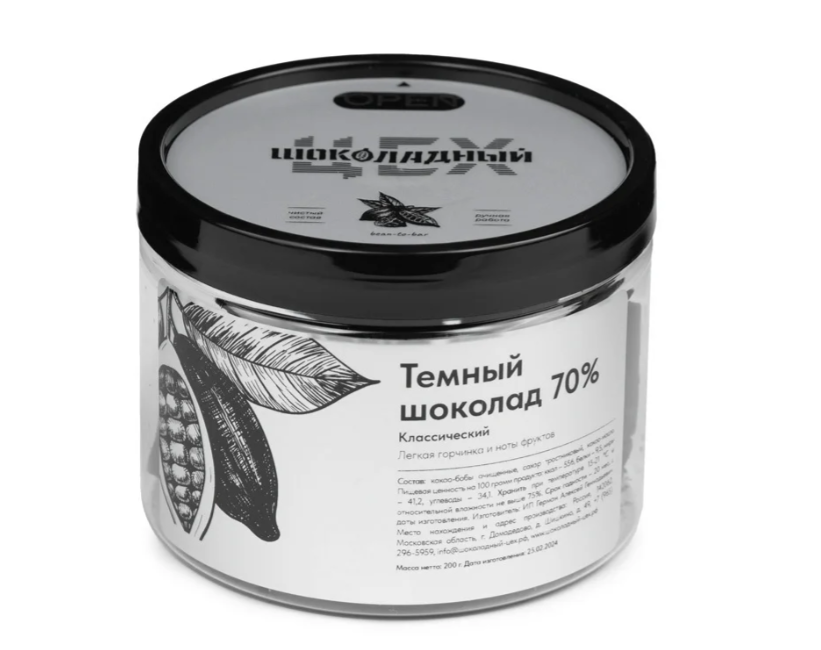 Вся наша продукция обладает чистым составом, мы не используем красители, консерванты или ароматизаторы. Более того, мы работаем только с ароматическими какао-бобами, обладающими от природы ярким вкусом и ароматом (в международной классификации – fino de aroma).