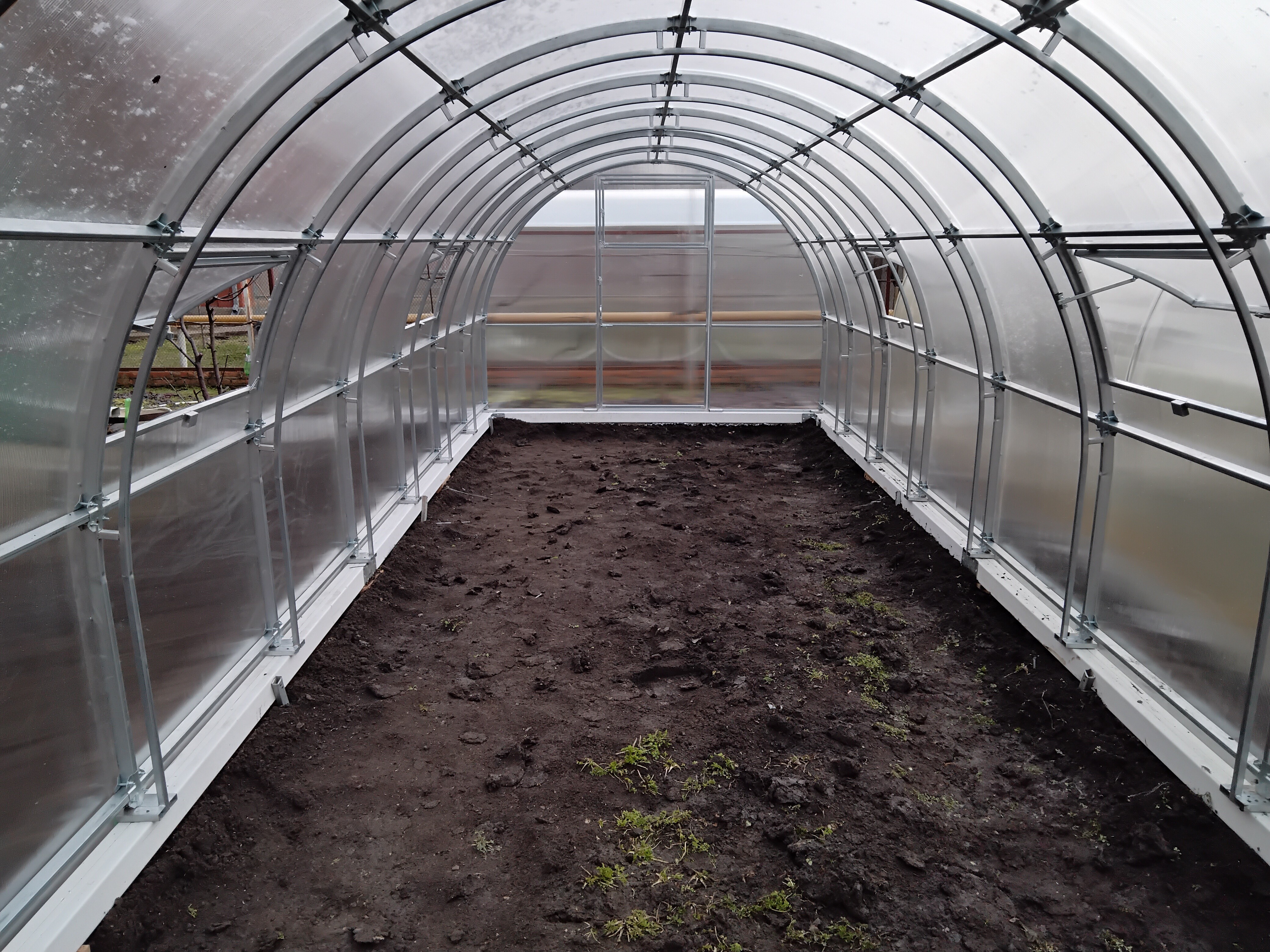 Заказали теплицу по Митлайдеру. Именно ее всегда хотели. Высокая, широкая! Добротный каркас, поликарбонат с гарантией 10 лет. На 10 м в длину, внизу 10 форточек с двумя автоматическими открывателями. Наверху тоже форточки. Двери широкие с двух сторон. Теплица внушительных размеров, поэтому не стали рисковать со сборкой, заказали вместе с теплицей. Все отлично, спасибо компании.